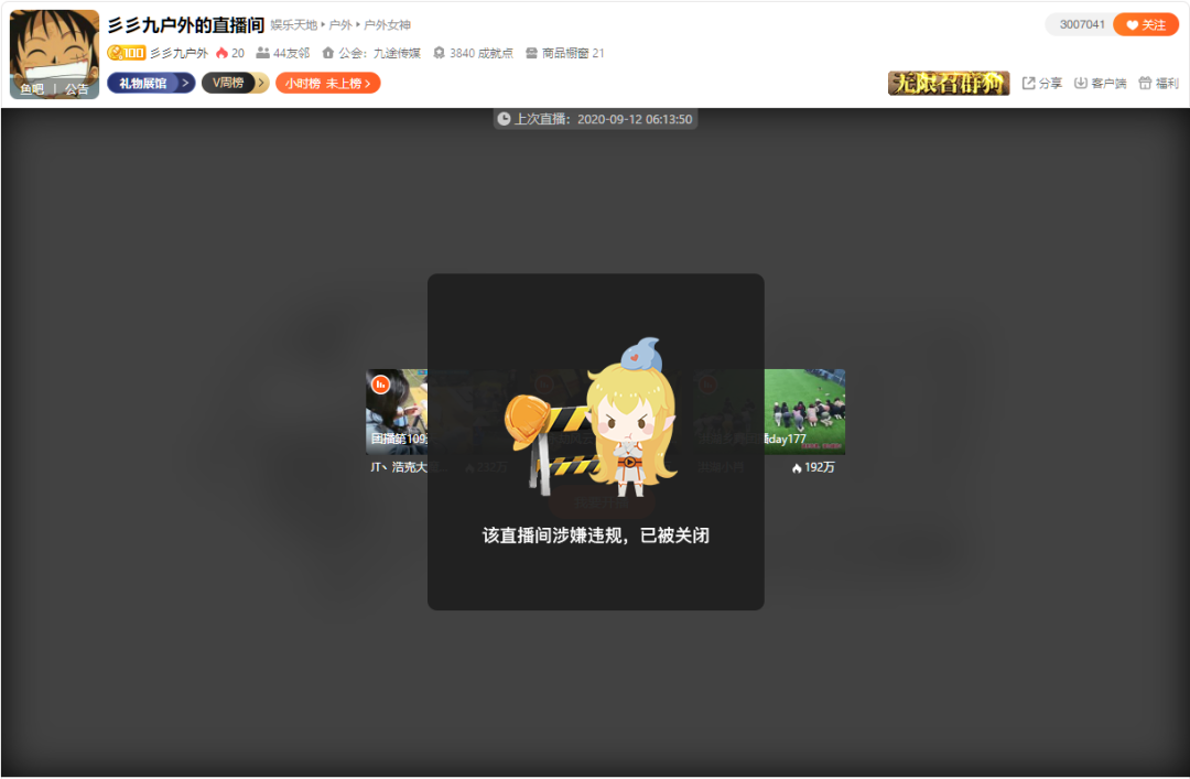 在游戏直播行业,平台入股直播公会、深度绑定大主播,并不稀奇。“彡彡九户外”被封禁后,九途文化旋即注销;但公会大主播“翻车”造成恶劣影响,平台也很难独善其身。