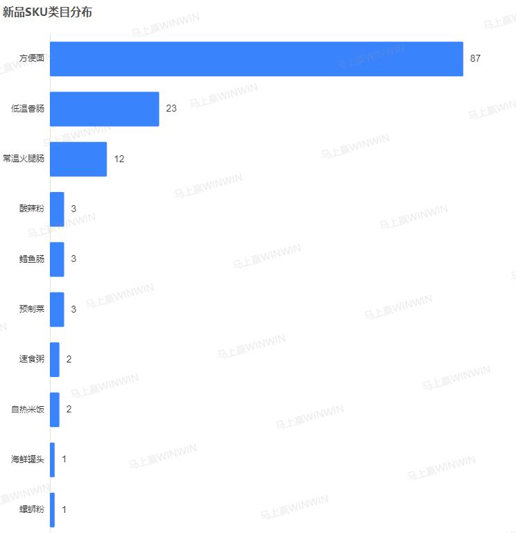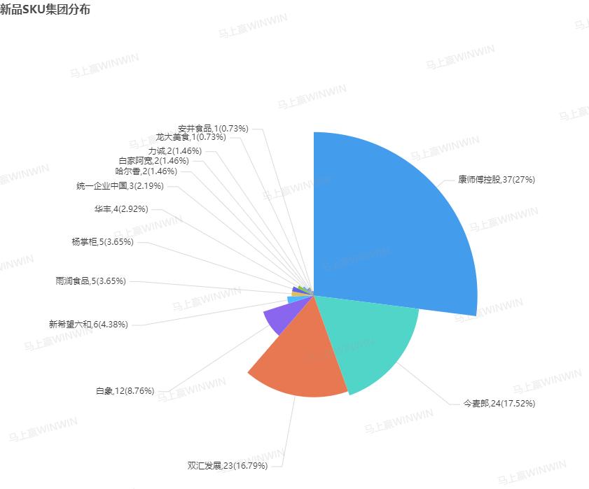 从集团的角度来看,方便面在方便速食内部的影响力也令人一眼便知。可以看到,以一己之力推出方便速食类目内27%新品的康师傅,以及贡献了17.52%新品的今麦郎,均在方便面赛道内深耕已久;而凭借香肠、火腿肠在方便速食类目站稳脚跟的双汇发展也在三季度推出了23款新品,占据16.79%。对于传统品类而言,如何精准把握消费者偏好推出新品、进行年轻化创新是其在当下所面临的重要问题。