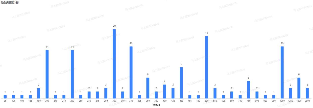 从新品的规格上看,可以发现在三季度的新品中,大规格产品出现的频率明显较高;与此同时,也有企业将小包装产品视作产品创新的发力点;此外,整体上看可以发现规格的细分趋势已然显现,除去300ml、500ml等经典规格外,180ml、280ml、450ml等规格的产品也逐渐增多。此前我们曾从可口可乐产品规格的角度对其价格变动进行分析(数读「可口可乐涨价」:真涨价了吗?),发现在价格上涨的压力之下,企业往往会采取多切细分规格的方式,从而在减轻涨价负担的同时满足消费者多样化场景下的需求。