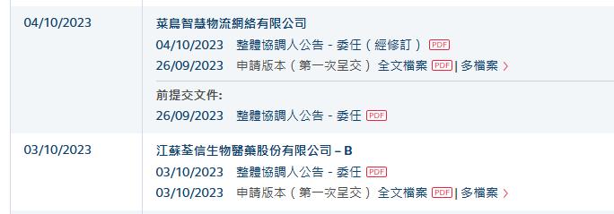 目前,据披露易中文版官网,证监会已经接收菜鸟在香港上市的备案材料。
