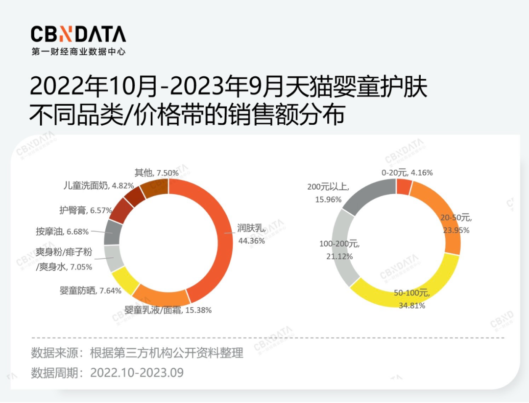 在婴童护肤领域,玩家主要分为专研儿童护肤的品牌以及开设儿童护肤线的大众美妆品牌两类,前者如国际品牌Aveeno、国货品牌郁美净,后者如贝泰妮子品牌薇诺娜宝贝、百植萃子品牌稚可。大部分儿童的护肤诉求相对精简,消费者关注重点集中于肤感、功效、成分安全。相应地,儿童护肤品牌主要切入润肤乳、儿童面霜品类,定位于“安心”“修复”“保湿”等基础功效,产生了郁美净儿童霜、红色小象保湿霜等经典产品。