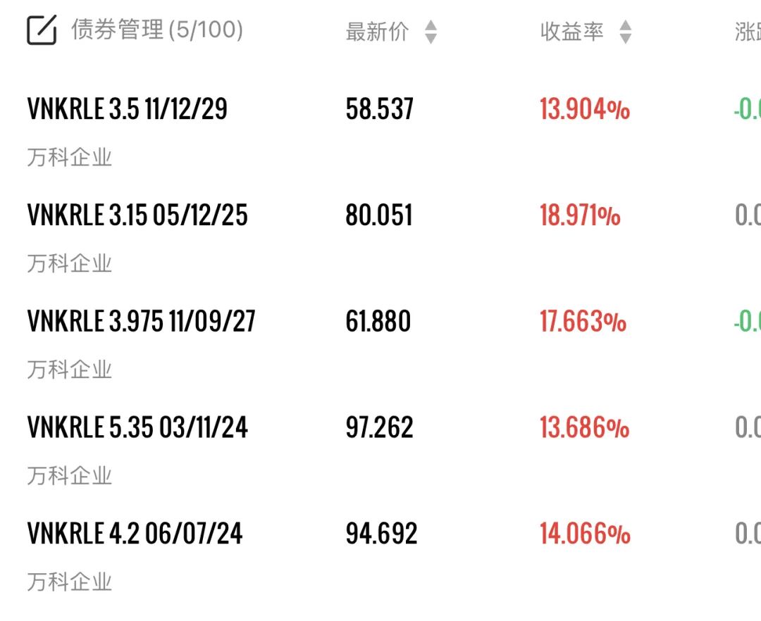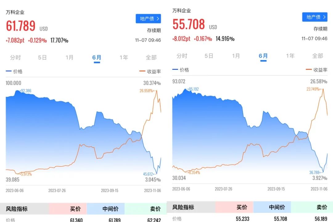 在评级机构下场后,二级市场也“用脚投票”,万科两笔境外债价格开始暴跌。