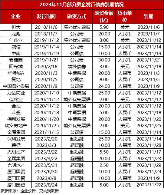 根据克而瑞数据统计,10月80家典型房企共有20笔债券到期,剔除掉已经提前赎回的部分之后约为307亿元。也就是说,10月其融资规模(213.6亿元)远不及10月到期债务偿还规模(307亿元)。