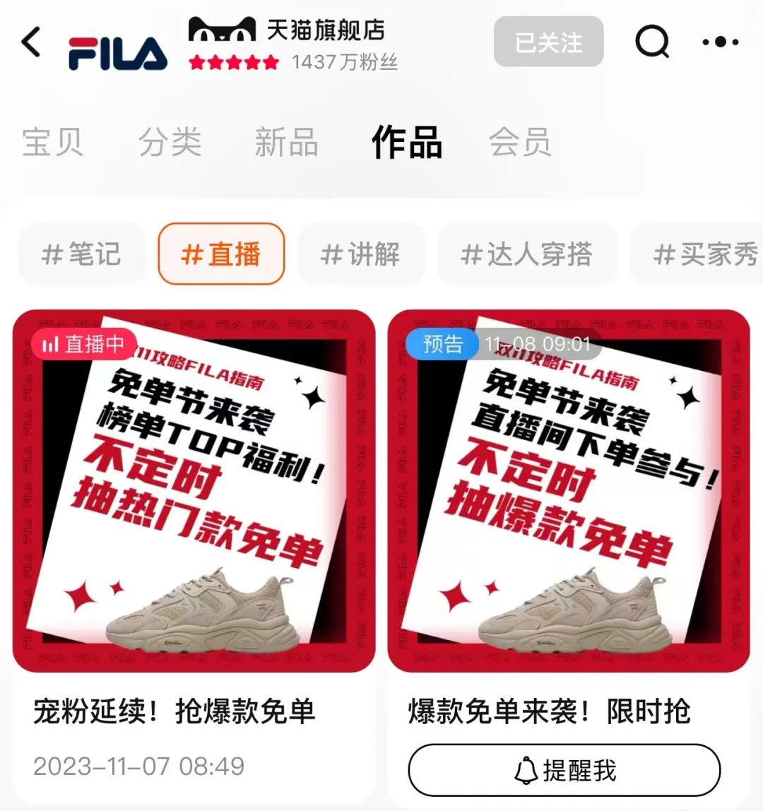 借助内容化的直播玩法,FILA淘宝直播间已累积了超过1437万粉丝,同比去年实现翻倍增长。