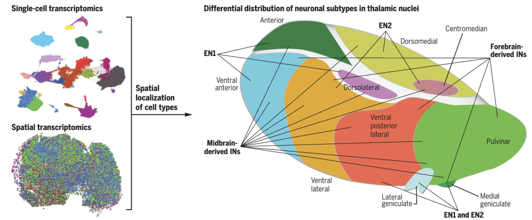最后一篇论文关注的是丘脑的发育过程。丘脑是大脑与外界沟通的关键节点,并且哺乳动物的丘脑核团数量与投射模式相对保守。来自加州大学旧金山分校的Tomasz Nowakowski团队重点分析了人类丘脑发育时的细胞类型和空间组织等特征[13]。