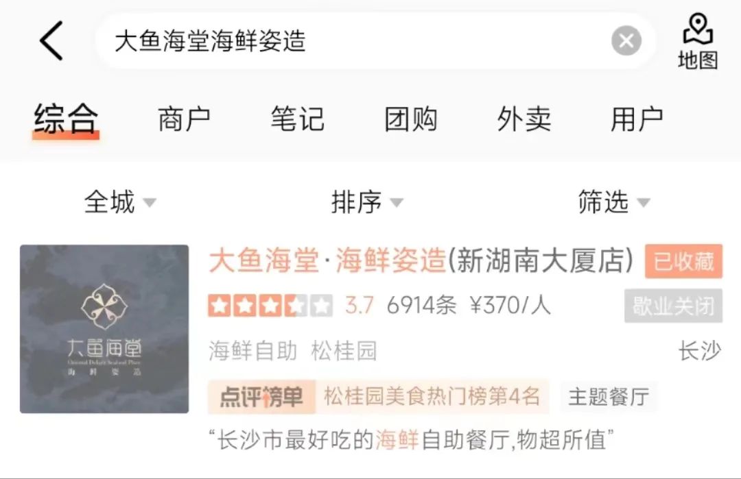 长沙大鱼海堂·海鲜姿造,这家曾经频频被网友、美食博主推荐的高端自助餐厅,近日被曝“歇业关闭”。