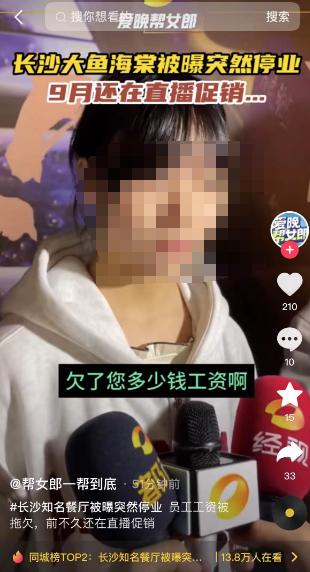 除了会员和供货商,员工也在努力维权。据湖南公共频道官方抖音号“帮女郎一帮到底”报道,长沙大鱼海堂多位员工被欠薪,一名员工表示其被拖欠的4000余元薪资仍未到账。