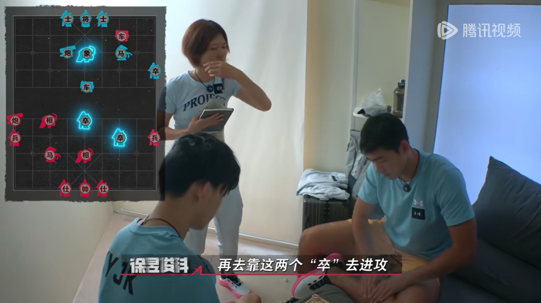 分完组之后的象棋棋盘任务,严敏设计了重达400斤的象棋和徒手攀爬的10米城墙,但如何在残局中找到将军获胜的机会、棋子和选手如何对应的排兵布阵、以及前期预埋能辅导获胜策略的NPC,都让“智斗”起了举足轻重的作用,也让原本最直给的热血感被消解。