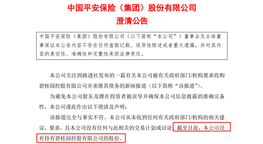 此外,中国平安在公告中称,截至目前,公司没有持有碧桂园的股份。