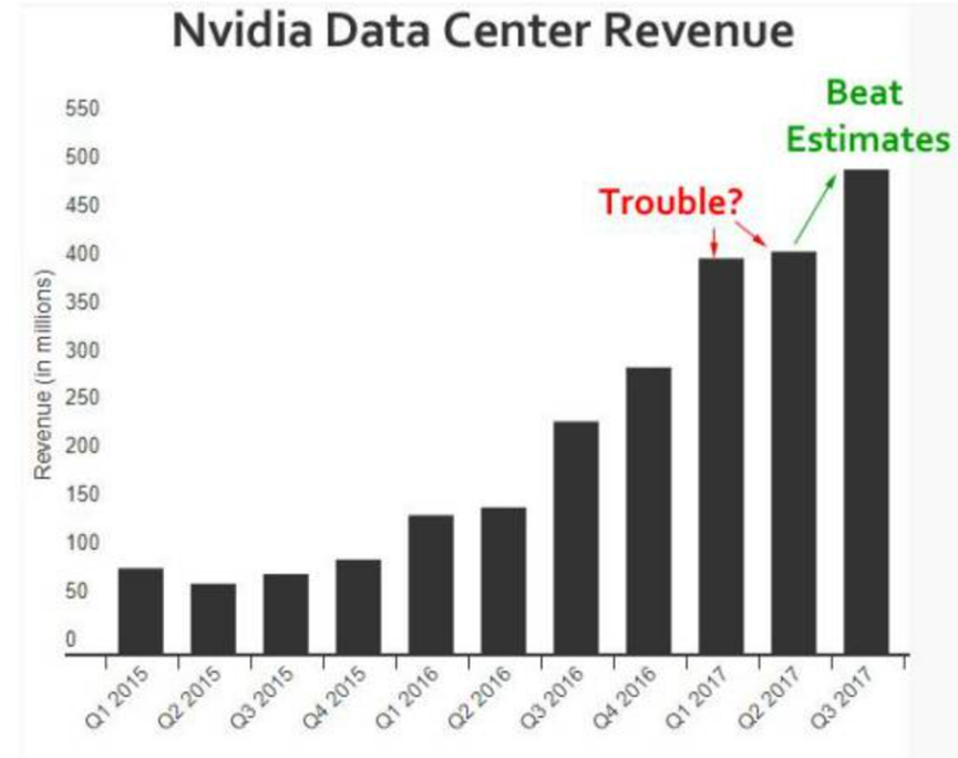 2016年增长更是在150%以上。数据中心的发展,也终于改变了英伟达自2013年以来的增长乏力。