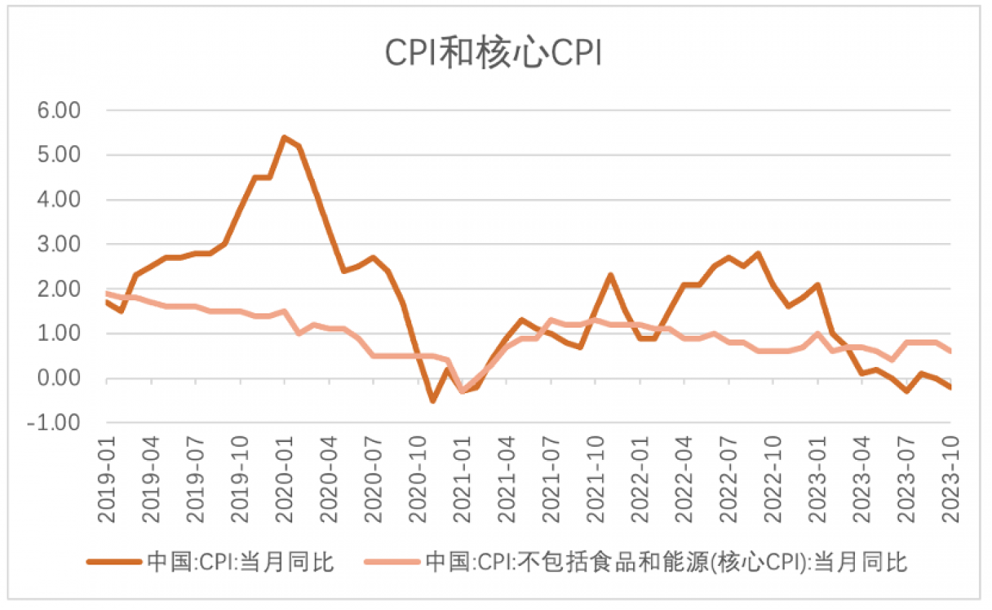 核心CPI相对稳定。10月核心CPI环比为0,同比上涨0.6%。从原因看主要是服务业和消费品价格回落。食品价格大幅下降,能源价格保持平稳,导致CPI降幅高于核心CPI。