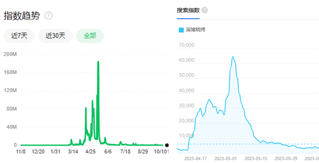 淄博烧烤,本身就是具有周期性、季节性的。在流量和温度下降后,淄博烧烤的热度下降是可以预见的。