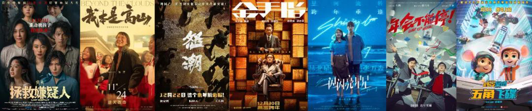 随后便是前文提到的《三大队》,以及同一个周末上映的《敦煌英雄》《怒潮》。前者是“中国少年宇宙”首部真人电影,历史题材在一堆犯罪类型片中较为少见。行至跨年档,《潜行》热度可观,《金手指》因梁朝伟刘德华联手引发关注,大鹏主演的《年会不能停!》是贺岁档标配喜剧,《一闪一闪亮星星》由网剧原班人马创作,有一定粉丝基础。