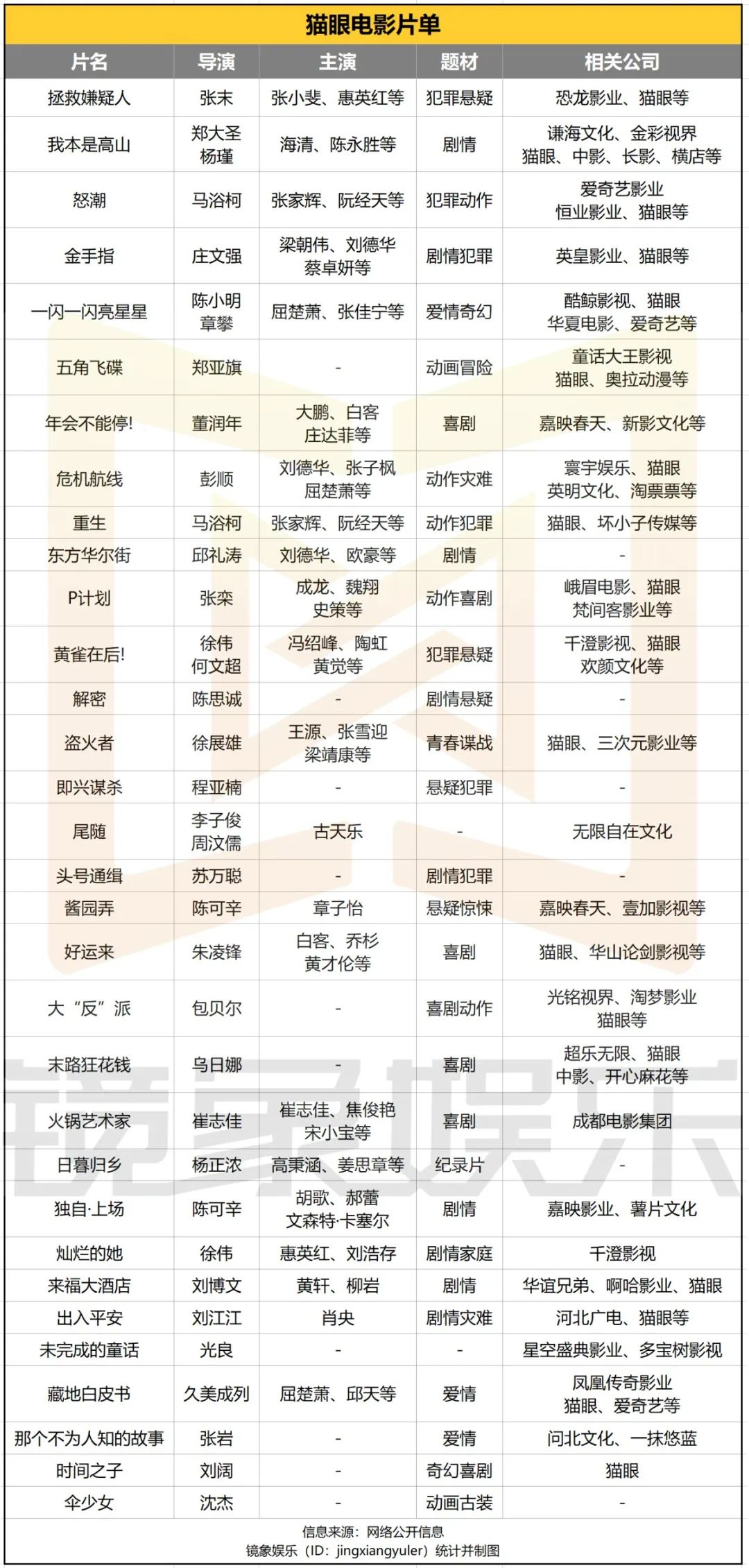 整体上看,电影片单虽然承载的内容有限,但折射着行业的内容走向和平台持续探索的阶段性成果。未来,随着各大影企布局的内容加速落地,在与市场的深度对话和行业的自我完善中,我们期待着电影的发展走得更加稳健。
