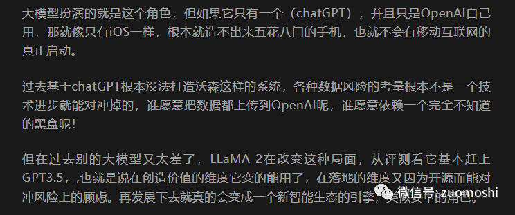 这会导致在OpenAI之外,形成一个开源生态,这就是之前开源大模型LLaMA 2会扮演类似Android的角色么?中提到的: