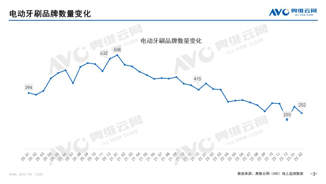 根据奥维运网报道显示,2021年-2022年电动牙刷行业走向低迷,多个品牌承压不力,电动牙刷品牌数量大幅洗牌,从658个在售品牌减少到不足300个在售品牌。与此同时存在产品质量参差不齐,低价低质产品横行市场,用户体验感较差等问题,消费需求严重不足,行业曾一度陷入低谷。