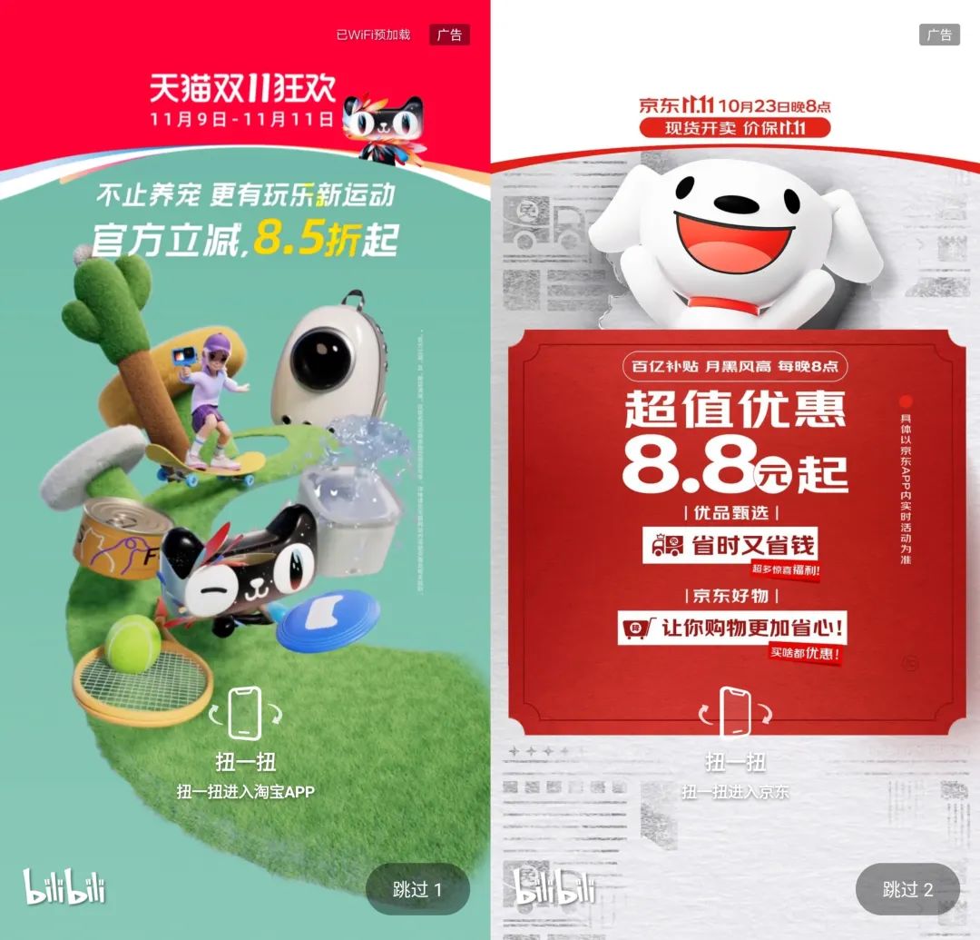 虽然大开环与闭环模式迥异,对内容生态的影响却是相似的。一位B站用户提到,双11期间,每当她打开B站App,开屏均为电商平台的宣传海报,首页也充斥着“XX(电商平台名称)杀疯了”字样的视频内容,“虽然没有广告标注,点进去一看还是广告”。