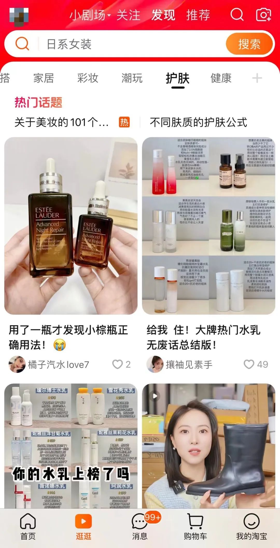 淘宝则细分了美食、穿搭、家居、彩妆、潮玩、护肤、健康这些不同的垂类,而且观察发现除了纯种草内容外,含有护肤技巧、产品对比等实用内容的数据表现会更好。比如已经在逛逛上有36.8万粉丝的穿搭博主@小小小小白,就分享了很多实用穿搭思路,虽然视频中都有产品链接,但并不会引起消费者的质疑与不满。