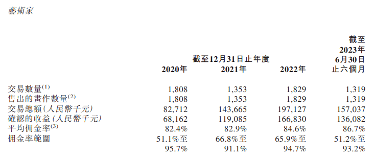 数据显示,目前画廊、拍卖行及其他艺术品平台及画廊的平均佣金率分别为30%、15%及20%,佣金率大幅低于竞争对手也说明公司在二手画作代理上竞争力不足。