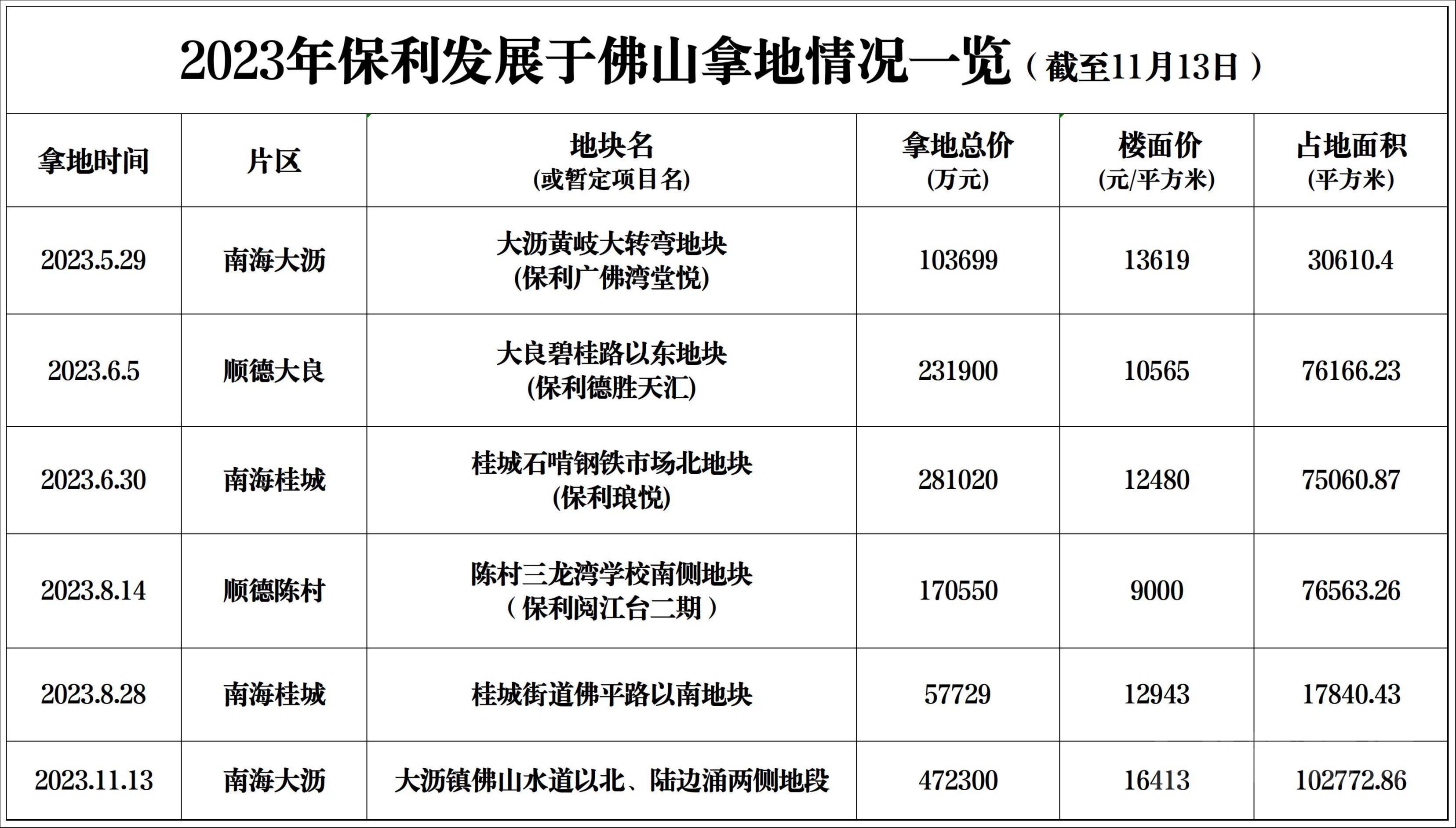2023年初至今,保利发展已在佛山招拍挂市场拿下6宗地块,拿地总金额超131.7亿元。