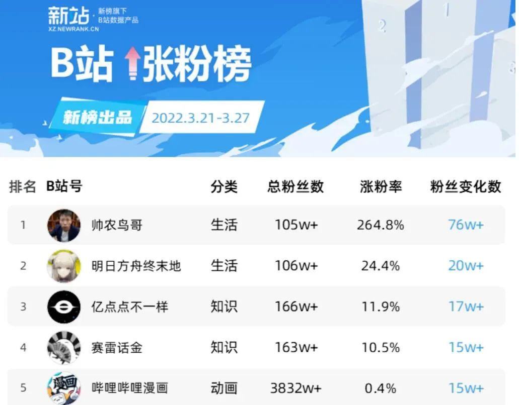 “帅农鸟哥”登上B站2022年“从0开始百万涨粉榜”,“灰太狼的羊”一个月涨粉500多万,直播观看场场10万+。