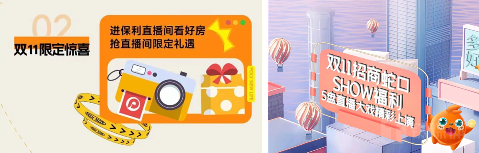 "双11"期间,保利、金茂、招商蛇口等各大房企在不同平台开启直播卖房,例如,招商蛇口推出了多盘直播show,看直播可获取各种礼品。