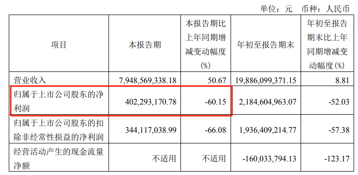 在此影响下,合盛硅业业绩连续下滑。2023年第三季度,合盛硅业仅盈利4.02亿元,同比下滑60.15%。