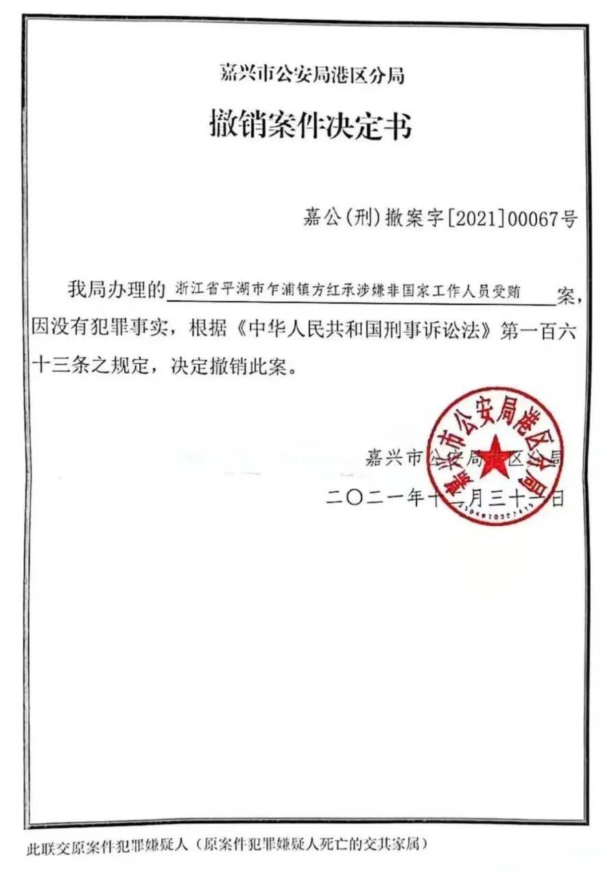 直到2022年9月份,方红承、方红兴(方红承弟弟)被平湖市检察院以涉嫌非国家工作人员受贿罪批准逮捕。