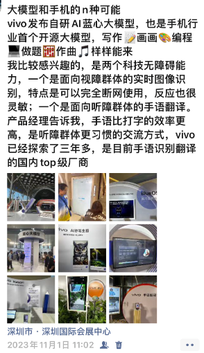 我在VDC大会,实地体验了基于蓝心大模型的“vivo看见”,可以在完全没有网络的情况下,为视障群体提供物品实时识别,辨认出植物、二维码、公交卡等物体,响应很及时,手机的发热和续航也在可接受范围内,确实能解决视障群体出行在外时感知外界环境的实际需求。
