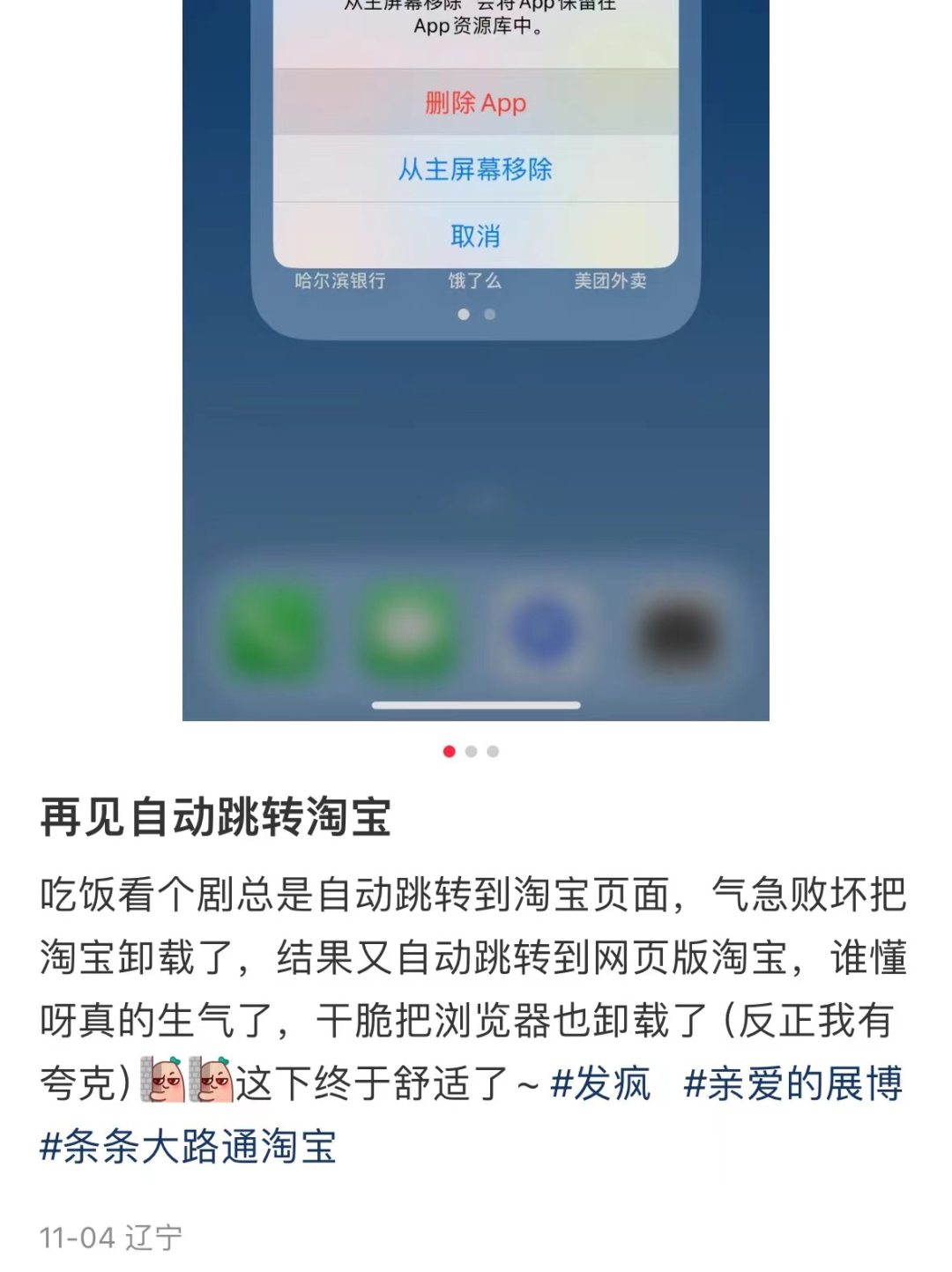 在卸载前,刘白琳尝试测验究竟是什么动作触发了跳转:“最气人的就是,我确定我并没有摇动手机,翘起了大拇指没有触碰屏幕,还是会跳转。”