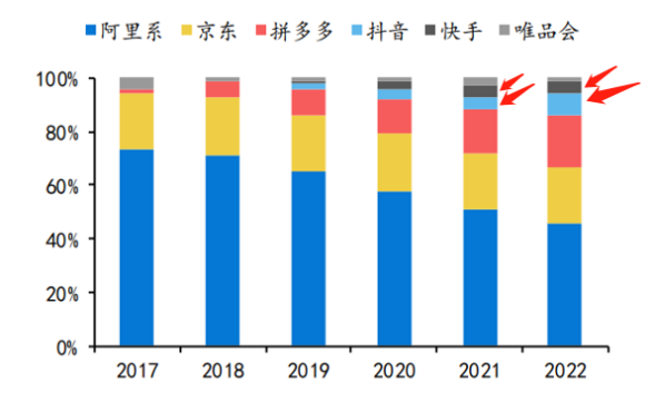 (图:2022年各电商平台细分品类市场份额 来源:招商证券)