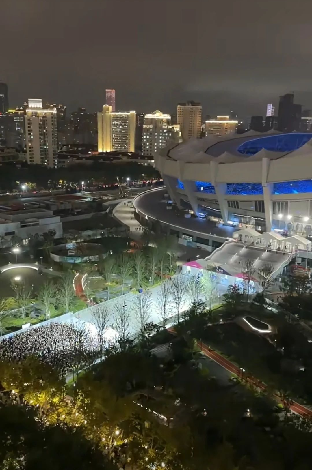 同样在10月中旬,五月天“诺亚方舟”演唱会在广州开唱,场外也是人山人海,荧光棒灯海围了体育场好几圈。