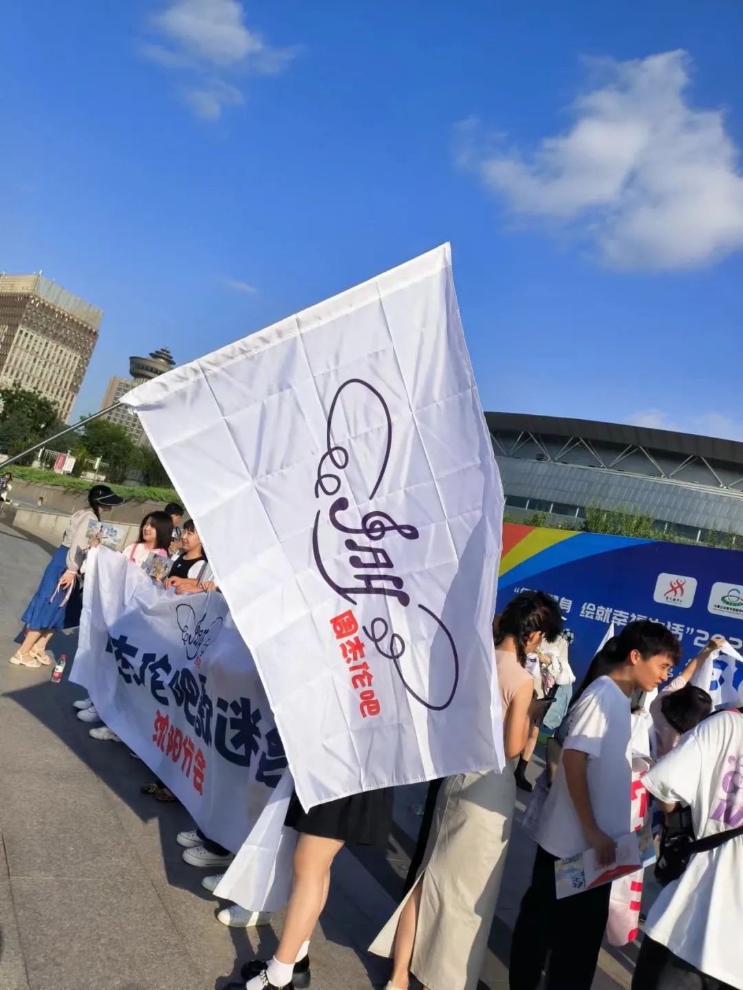 领完周边,陆洁和曾婷参加了歌迷会组织的合照,一起喊出了“寻杰千百度,爱伦停不住”的经典口号。随后,她们跟着大队伍到了场馆附近的周杰伦Q版人偶雕塑面前拍打卡照。今年周杰伦演唱会回归之后,各站设置了许多雕塑打卡点位。最多的是太原站,全城共设置了十多处打卡点位,每一处的雕塑风格都不同,这也让打卡雕塑成为了歌迷们的必备节目之一。