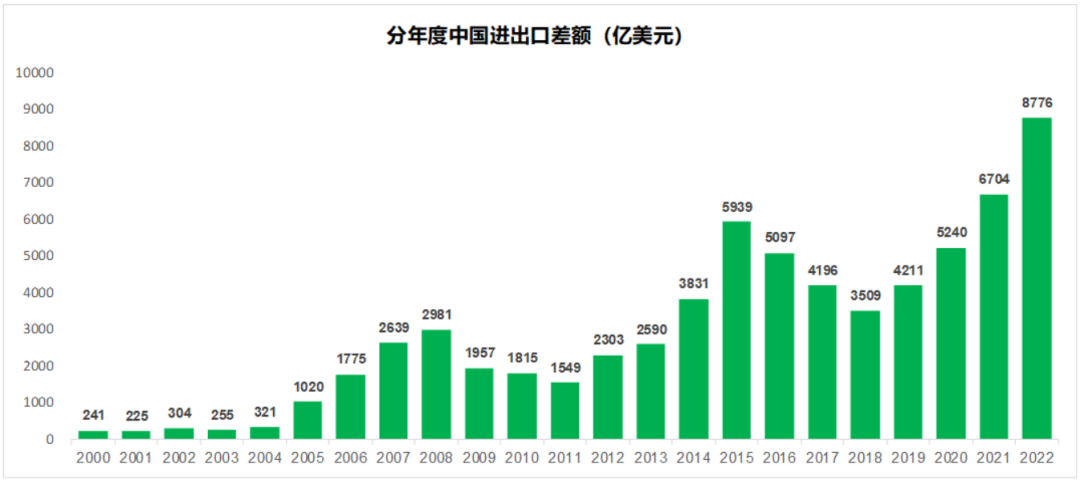 我们能在这里评判印度的底气,是上面这组数据给的,2022年中国实现进出口贸易顺差8776亿美元。