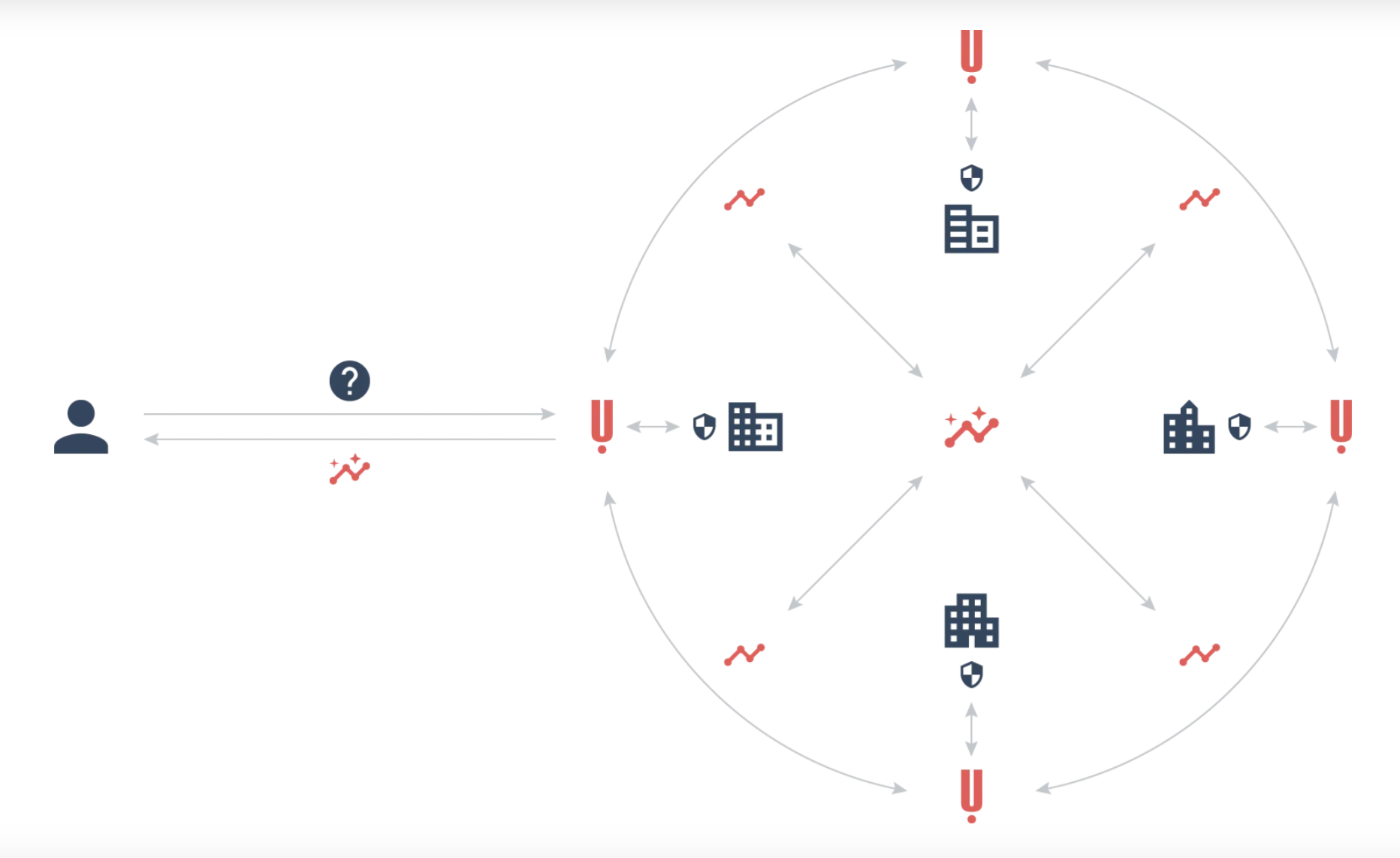 基于多方同态加密技术,Tune Insight与各机构的数据集连接,并提供一站式查询检索平台,使用者可以在Tune Insight平台上轻松构建查询并一键获取结果。对于提出的查询,平台系统将对所有相关数据集分别进行计算,生成经过统计分析预测和机器学习模型训练后的部分加密结果,并对所有加密结果进行汇总,提取出数据的“集体智慧”。