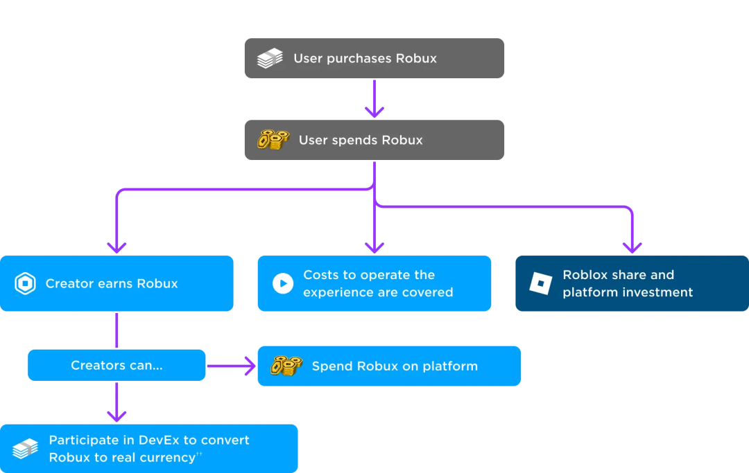 这样的模式让Roblox不等同于传统的MMORPG,在生态上实现了开放世界,而且还让参与建设开放世界的人,获取到了现实意义上的利益。