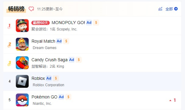 很多国内玩家完全无法接受Roblox的低画质和方块画风,对于绝大多数美国玩家来讲可能刚刚好。从常年占据畅销榜前列的绝大多数游戏被卡通休闲类占据这一点来看,相比精美的画质,美国手游玩家对玩法的认同更高,且完全能够接受卡通手游这一设定。