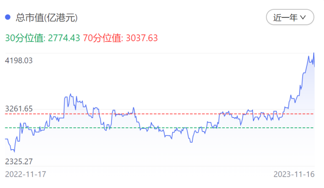 截至2023年11月17日,小米集团的年度涨幅为45.70%,同期恒生指数的年度涨幅为-11.76%,市值上涨了近2000亿港元。