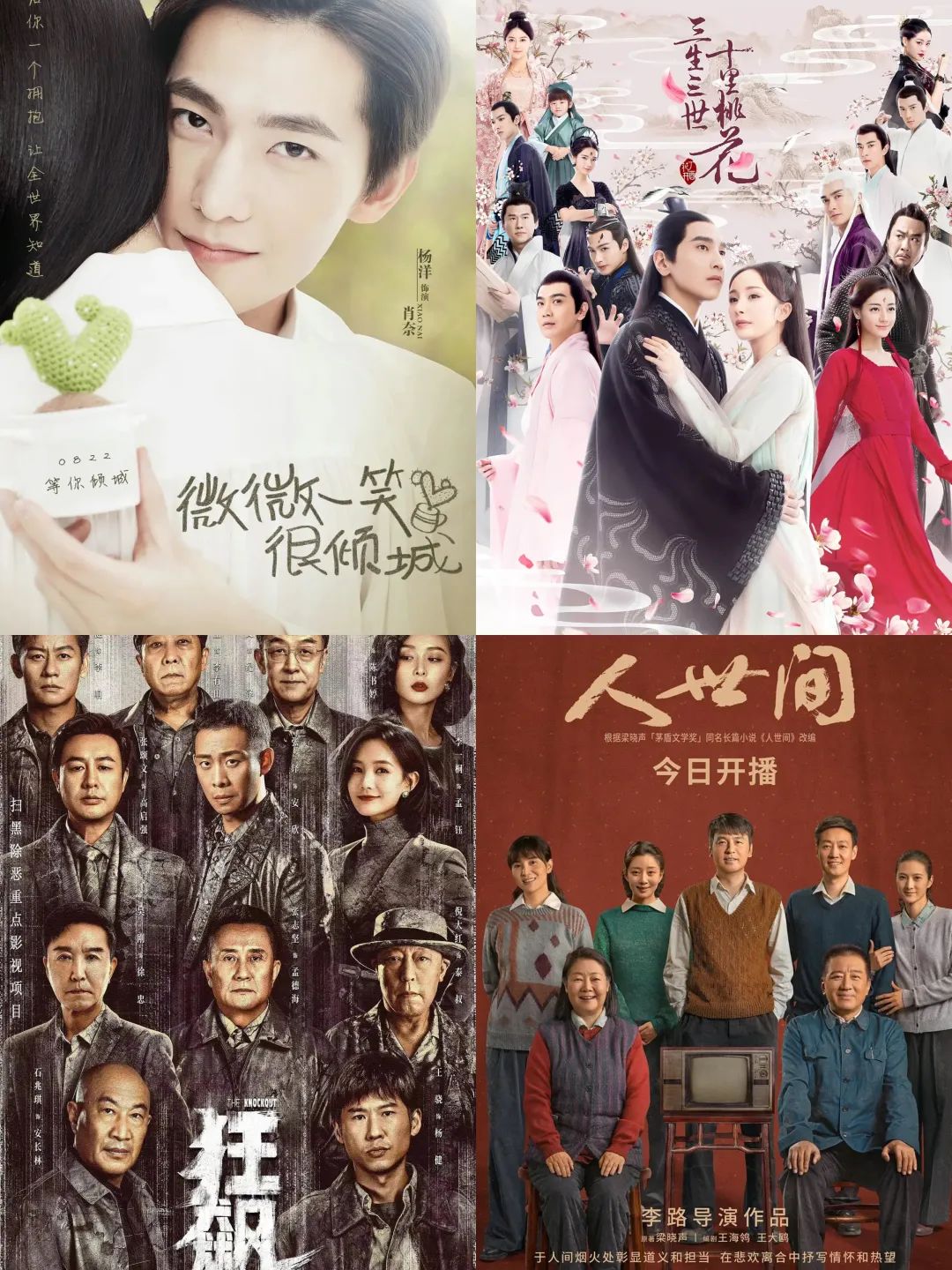 《微微一笑很倾城》《三生三世十里桃花》《狂飙》《人世间》(图源:豆瓣)