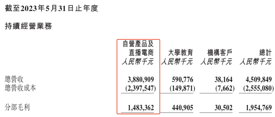 结合东方甄选最新财务数据来看,2023财年(2022年6月1日-2023年5月31日)东方甄选自营产品及直播电商业务的总营收39亿元,其中自营产品总营收超过26亿元,毛利15亿元。