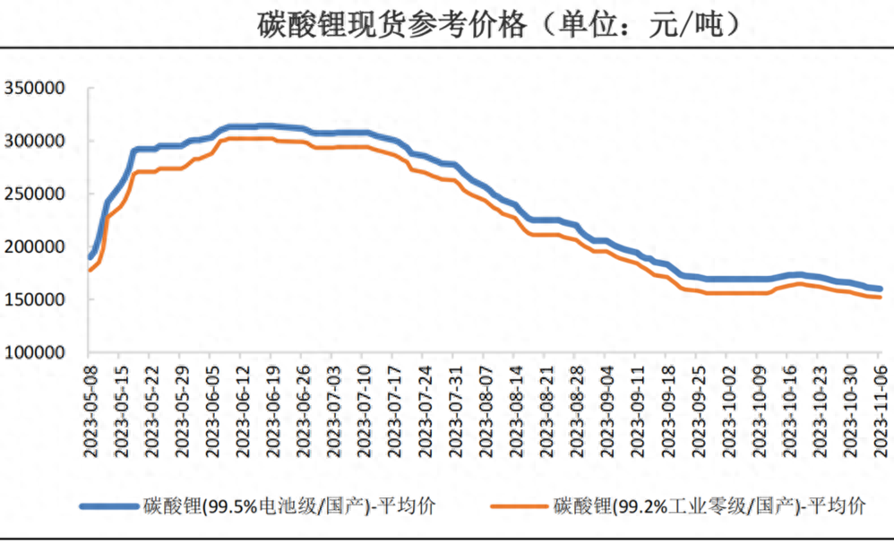 11月17日,电池级碳酸锂最新报价14.7万元/吨,创出了两年新低。