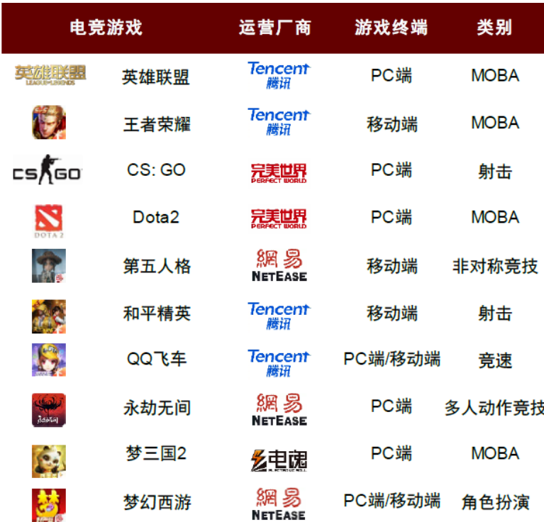 电竞产业上游是游戏研发和运营。其在整个电竞产业链中的支配地位堪比芯片在智能设备中的地位。这一环节基本掌握在腾讯、网易、完美世界等游戏大厂手中。