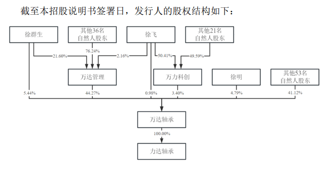 招股书显示,徐群生直接持有万达轴承5.44%,另外还享有万达轴承44.27%的表决权,徐群生从昔日国营企业“打工人”摇身一变成为私营企业实控人。