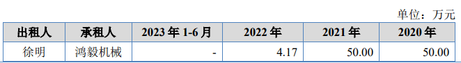 2020年、2021年鸿毅机械连续两年向徐明支付50万元租金,2022年1月,徐明将房屋无偿转让给公司,因此从2022年2月开始,万达轴承与鸿毅机械无房屋租赁交易。