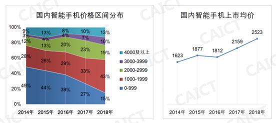 一方面新规格与硬件要求下,成本端带动价格的全面提升:主价格区间从0-999元上升到1000-1999元,对应的国内智能手机上市均价也从1623元提高到2523元。