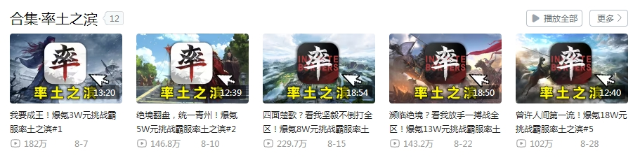 相较于“叮当猫”之前的视频,《率土之滨》系列的播放量陡然提升。