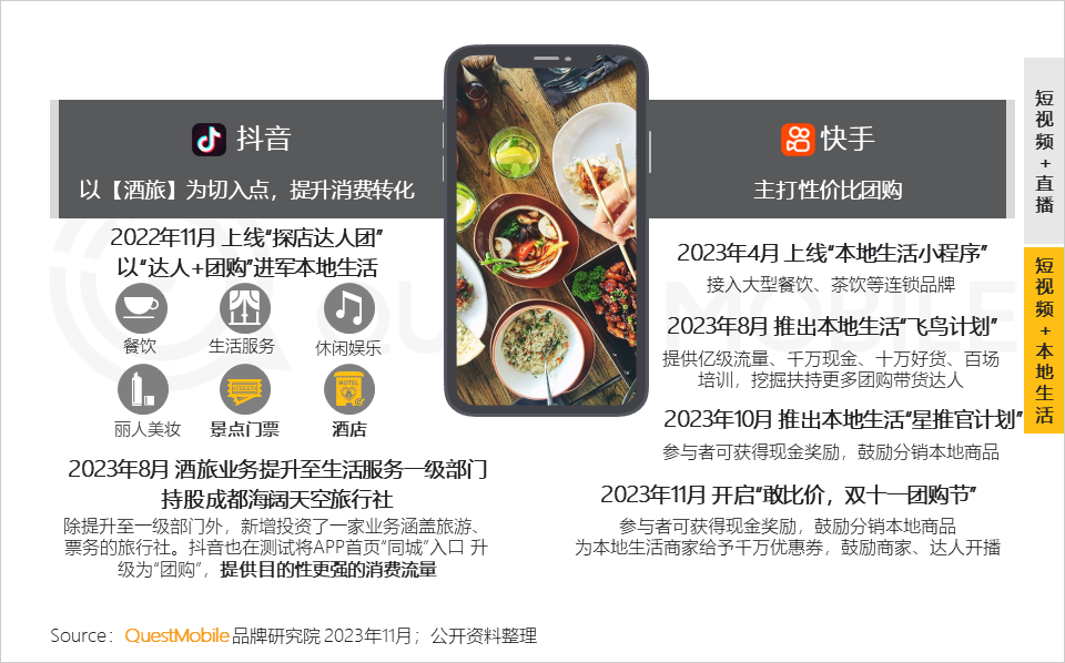 5、在跑通了“货找人”的商业逻辑后,抖音、快手分别对本地生活板块做了相应的调整和业务定位,差异化是下阶段核心关键词
