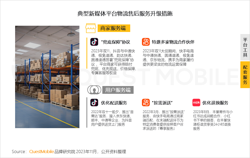 5、随着电商交易逐渐闭环,平台也在加强物流履约与售后能力;一系列的举措实质上是提升商家与消费者的双向体验,也让商业化走得更稳更远