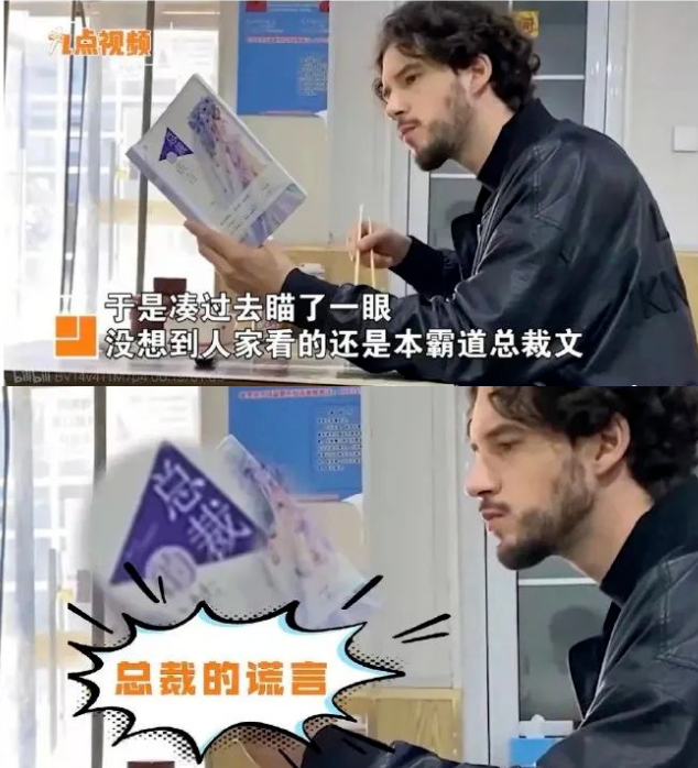 一位网友曾拍下这样一个画面:高鼻深目卷头发的外国小伙儿,在面馆里一口蒜头就一口面,还拿着点读笔翻译一本中国小说,名字叫做《总裁的谎言》。