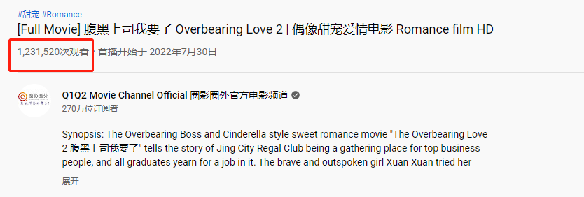 还有这部剧——《腹黑上司我要了》,光听这名儿就要把国内观众劝退80%。可在youtube上,单集播放量就上百万了。